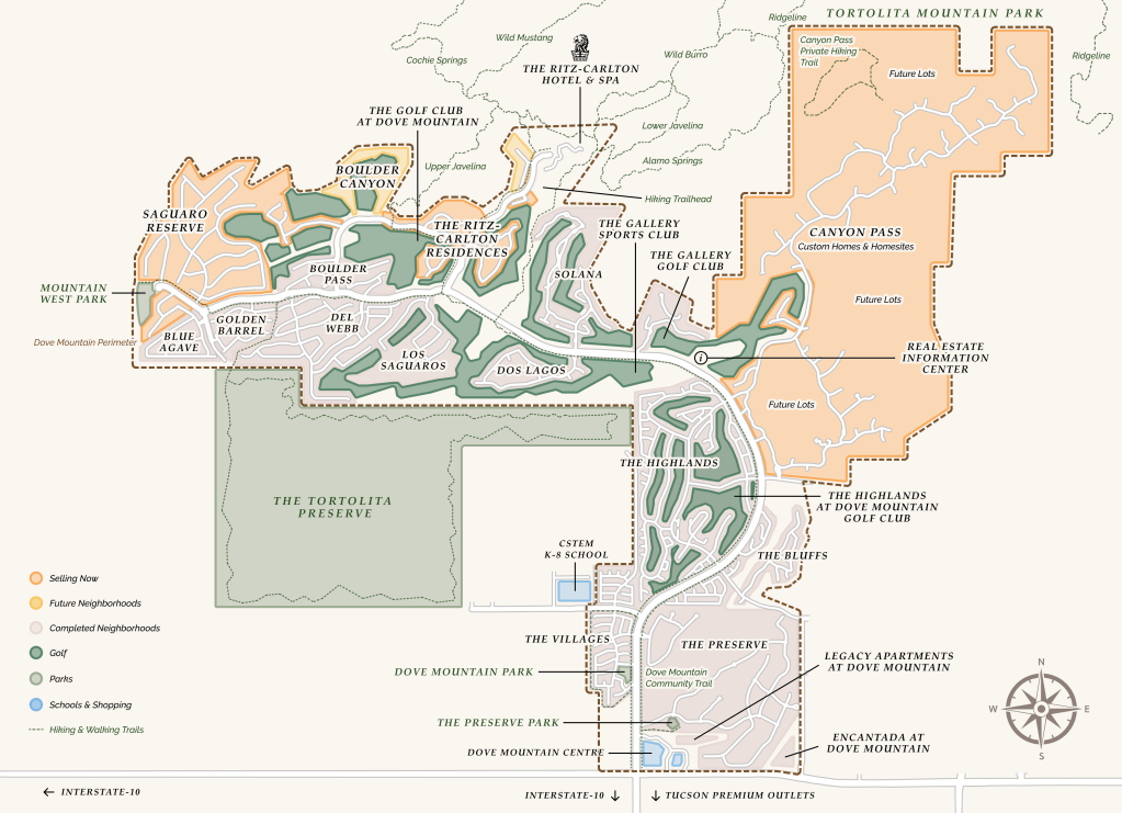 Dove Mountain is a master-planned community located in Marana, Arizona, just northwest of Tucson. Known for its picturesque desert landscape, stunning mountain views, and luxury style living, Dove Mountain offers a range of amenities and attractions for residents and visitors alike.